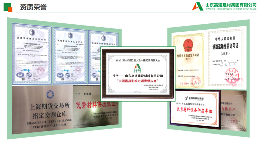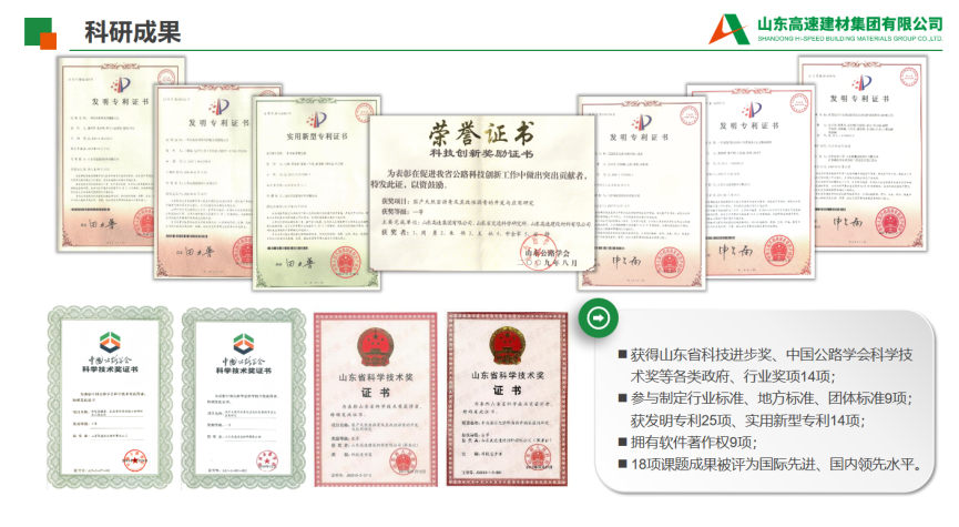 7.(中国)官方网站简介:(中国)官方网站简介:九州官方网站入口是由山东高速集团、美国海瑞集团共同出资组建的中外合资企业,注册资本3.61亿元人民币,下辖7家权属单位。 (中国)官方网站主要从事各类道路沥青的研产、储运、销售以及公路、桥梁等防水材料的生产施工,公路、港口、铁路、房建等建设材料的经营业务等。沥青(中国)官方网站坚持以创新为追求,以市场为导向,以客户为核心,以价值为考量,致力于打造具有国际竞争力的世界一流建材综合服务商。作为山东省道路材料经营的龙头企业,沥青(中国)官方网站在沥青市场占有率居全国同行业第一位,建有改性沥青生产线15条,拥有50万吨以上的沥青罐容、50万吨以上的钢材库容、日运力5000吨专业沥青车队及山东2家上期所石油沥青交割社会库,参与建设了华北、华东、华中、西南、西北等5个区域26余个省市的高速公路和市政道路工程;参与了阿尔及利亚东西高速、埃塞俄比亚AA高速及朝鲜平壤重点公路等项目的材料供应,为国内外公路、铁路建设做出了重要贡献。(中国)官方网站将技术创新作为可持续发展的动力,与中国石油大学、山东交通学院、美国海瑞集团等开展了有效深入合作,科研创新软实力进一步增强。2008年至今,先后承担20余项交通运输部、省交通运输厅等政府部门立项科技项目,获得山东省科技进步奖、中国公路学会科学技术奖、山东公路学会科学创新奖、交通科学技术奖等政府、行业奖项共16项,参与制定行业标准、地方标准、团体标准共9项、在制定地方标准3项,授权发明专利27项、实用新型专利18项、在申请发明专利14项,拥有软件著作权9项,省级工法1项,鉴定科技成果18项,发表学术论文18篇,获批一个集团级科研平台--沥青新材料研发平台,科技创新成效初显。